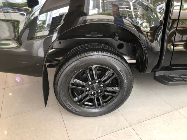 Bộ mâm xe sơn đen mới với 6 chấu kép kích thước 265/60R18 trên bản Wildtrak. Trên các phiên bản rẻ tiền là bộ mâm thép kích thước 255/70R16. Bên trong đều là phanh đĩa (phía trước) và tang trống (phía sau).