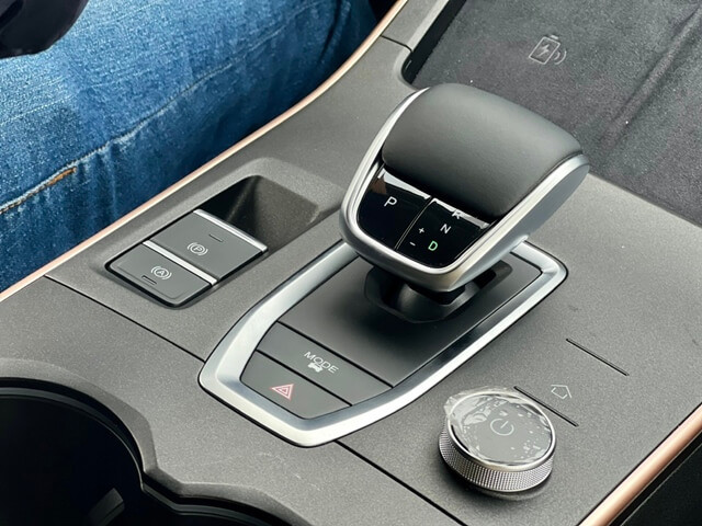 Khu vực trung tâm với cần số điện tử và các phím chức năng như phanh tay điện tử, sưởi ghế trước, chuyển chế độ lái. Xe có đèn viền nội thất, khả năng sạc không dây cho hai điện thoại cùng lúc. Nút đề nổ gợi nhớ đến Mercedes-Benz E-Class.